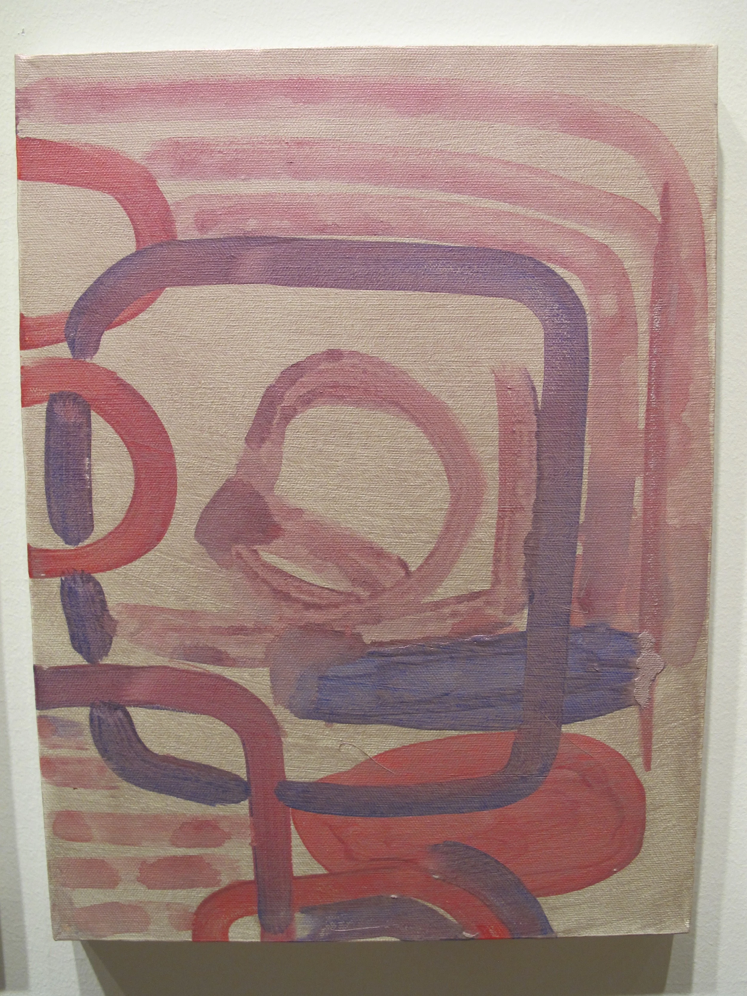 This series of works can be exhibited in many different ways since it is intentionally modular. In 2012 the series was shown as a whole and in parts at Collaboraction (96 paintings @ YO SOLO), The Krannert Art Museum (48 paintings @ Art + Design Faculty Exhibit), and The Evanston Art Center (7 paintings @ Evanston Art Center Biennial). At the 2012 Evanston Biennial the seven paintings from Difficult to Swallow that were exhibited were shown under the title, Deskilling Propriety. This title is a play on the germinal text by the educational theorist Ivan Illich, Deschooling Society (1970). For Lucero, an artist, professor, and researcher at The University of Illinois, painting (as well as many other art actions) falls tenuously into a liminal gap that presents itself simultaneously as a research and production opportunity. That middle-space can be equally social and personal; educational and activist; and ultimately somatic, while philosophical. For Lucero painting is a language and as such its poetic potential allows for it to be re-conceptualized, re-enacted, and even re-pedagogized.