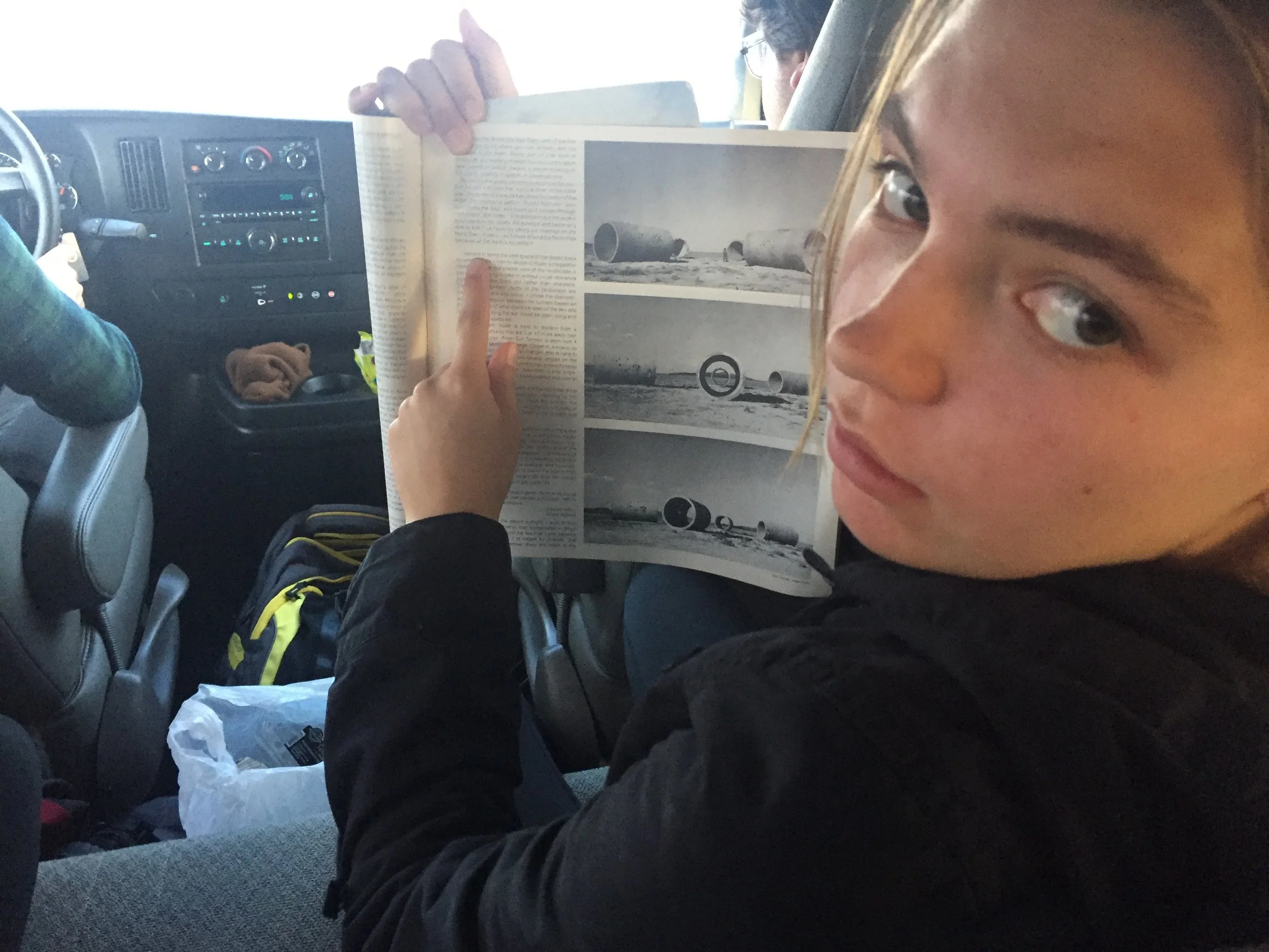 In November of 2017 I was invited to travel with a group of students from BYU (Provo, UT) to see Nancy Holt's Sun Tunnels (1973-76) near the Utah/Nevada border. Two fifteen-passenger vans of students made the eight hour round-trip into the middle of the Great Basin Desert. One van was filled with undergraduate art students and the other with graduate students. Their professor, Dr. Daniel Barney, asked me to ride with the graduate students in the early morning as we headed toward the Sun Tunnels and then with the undergraduates on the return back to Provo. He asked me to "hold class" with each of the groups in whichever way I saw fit during the four-hour treks. Coincidentally, the JORGELUCEROSTUDYCOLLECTION had just received a generous gift of old art periodicals from the art historian Jonathan Fineberg. Amongst that fifty-year archive was a 1977 issue of ARTFORUM wherein Nancy Holt describes--in detail--the process of making the Sun Tunnels happen. Within the robust discussion about art and the academy that the BYU students and I had as we zipped through the desert, I asked the students to read Holt's text aloud to each other. Two different things emerged from the reading performances. For the graduate students (on the way there) who hadn't yet experienced the artwork, curiosity and anticipation was piqued. The reading was a preparation, a slight concretization of the imagination. For the undergraduates (on the way back) analysis and reflection was engendered. A decompression occurred as information was ladled onto experience and the thoughts that were spoken by the students carried some "thing" indescribable but irresistible. For me, who witnessed the performance of the reading twice as bookends to seeing Holt's work, I was struck by how making and learning is informed by echoes. On the one hand, Holt's words--after hearing them aloud the first time--echoed in my experience while I was in the Sun Tunnels and on the other hand Holt's bracketing of the Utah desert (and my lived experience at the Sun Tunnels) echoed in my rehearing of of her words as the sun was setting and the undergraduates were getting sleepy. The enacting of the gesture (to ride there and back) and its subsequent becoming art and learning was made by all of us, but only made possible by their actual teacher, Dan Barney. Dan rode with the undergraduates on the way to the Sun Tunnels and then switched with me to ride with the graduate students on the way back. He never heard the piece read aloud and never heard me "guest-teach", yet he was integral to the execution of the performance/class. As he yielded from participating he opened up both the authoritative and actual space without which the piece couldn't have been made.
